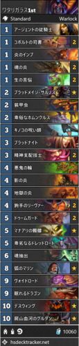 ### ワタリガラス1st # クラス: ウォーロック # フォーマット: スタンダード # ワタリガラス年 # # 1x (1) アージェントの従騎士 よわくない # 2x (1) コボルトの司書 # 1x (1) 炎のインプ # 2x (1) 生の苦悩 # 2x (1) 魂の炎 サルノスと幸運により4マナ10点…